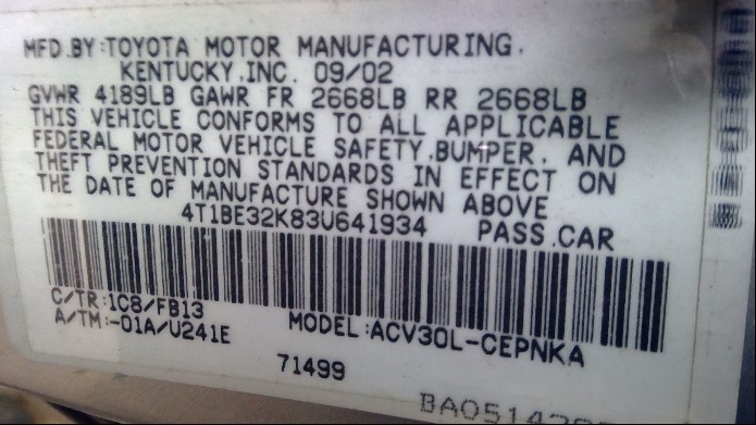 2003 TOYOTA CAMRY SILVER LE,2.4L,AT.  Z248952003 TOYOTA CAMRY SILVER LE,2.4L,AT.  Z24895