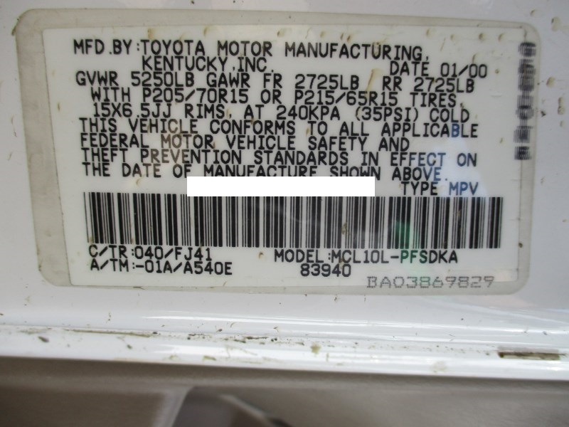 2000 TOYOTA SIENNA CE WHITE 3.0L AT 2WD Z16233