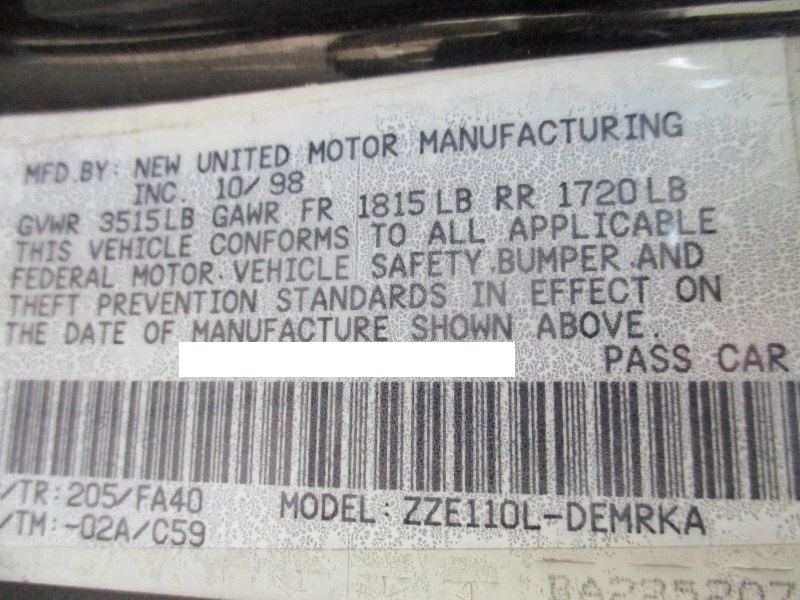 Make :TOYOTA COROLLA VE Interior Color: TAN