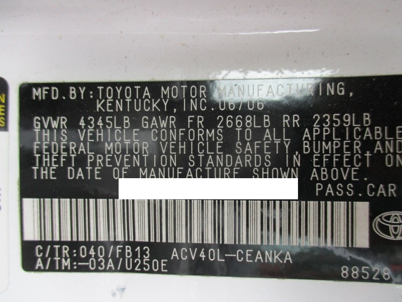 2007 TOYOTA CAMRY LE WHITE 2.4L AT Z176112007 TOYOTA CAMRY LE WHITE 2.4L AT Z17611