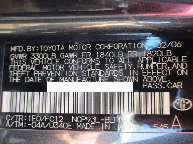 2007 TOYOTA YARIS S BLACK 1.5L AT Z176322007 TOYOTA YARIS S BLACK 1.5L AT Z17632