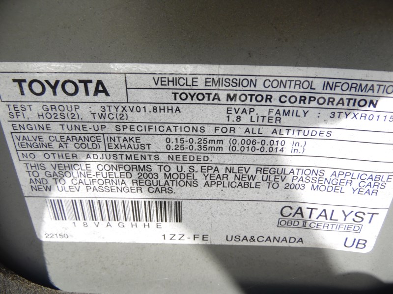 2003 TOYOTA MATRIX XR SILVER 1.8L AT Z178302003 TOYOTA MATRIX XR SILVER 1.8L AT Z17830