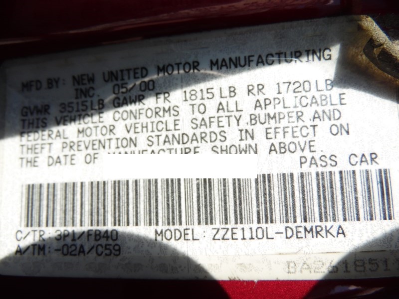 2001 TOYOTA COROLLA CE BURGUNDY 1.8L MT Z178392001 TOYOTA COROLLA CE BURGUNDY 1.8L MT Z17839
