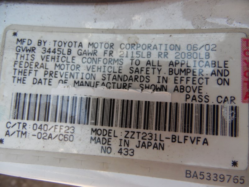 02 TOYOTA CELICA GT-S WHITE 1.8L MT Z18232