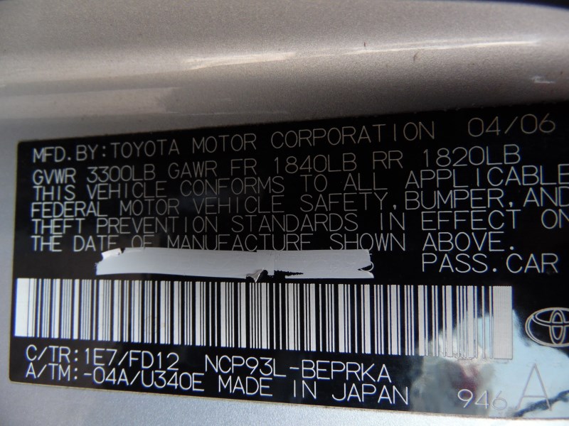 2007 TOYOTA YARIS BASE SILVER 1.5L AT Z18261