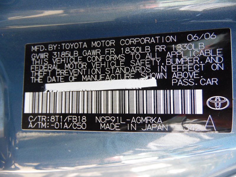 2007 TOYOTA YARIS LIGHT BLUE BASE 1.5L MT Z182972007 TOYOTA YARIS LIGHT BLUE BASE 1.5L MT Z18297