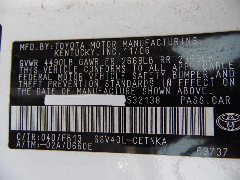 2007 TOYOTA CAMRY LE WHITE 3.5L AT Z195062007 TOYOTA CAMRY LE WHITE 3.5L AT Z19506