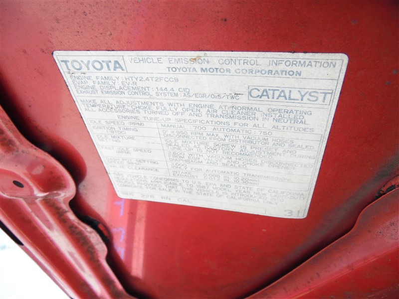 1987 TOYOTA TRUCK FLATBED 2.4 MT 2WD Z200331987 TOYOTA TRUCK FLATBED 2.4 MT 2WD Z20033