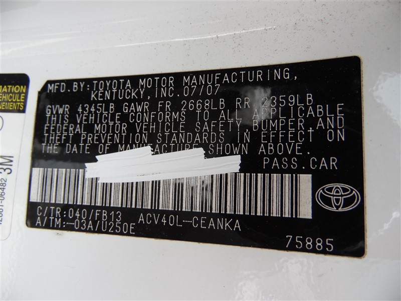 2007 TOYOTA CAMRY LE WHITE 2.4 AT Z200542007 TOYOTA CAMRY LE WHITE 2.4 AT Z20054