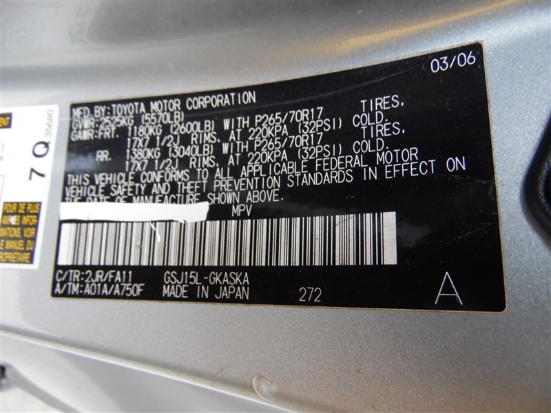 Make : TOYOTA FJ CRUISER Interior Color: GRAY