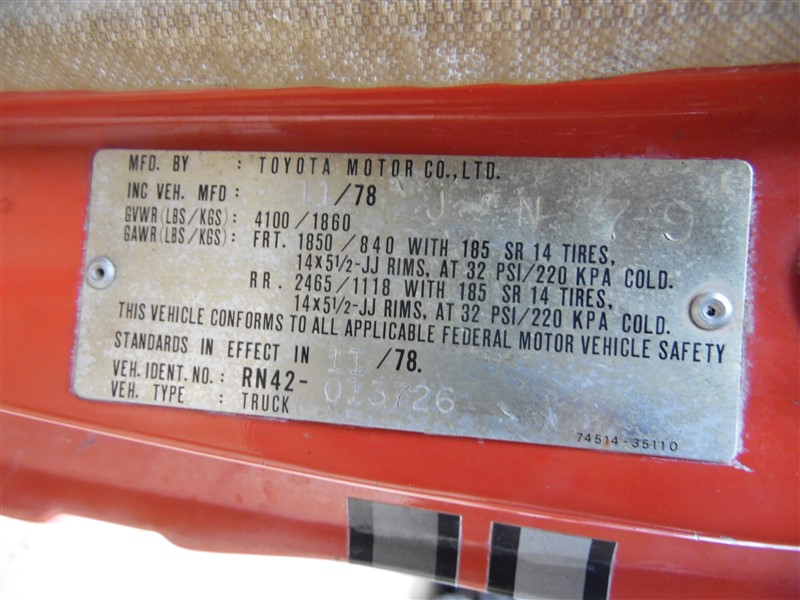 1979 Toyota Truck SR5 Orange Std Cab 2.2L MT 2WD #Z216691979 Toyota Truck SR5 Orange Std Cab 2.2L MT 2WD #Z21669