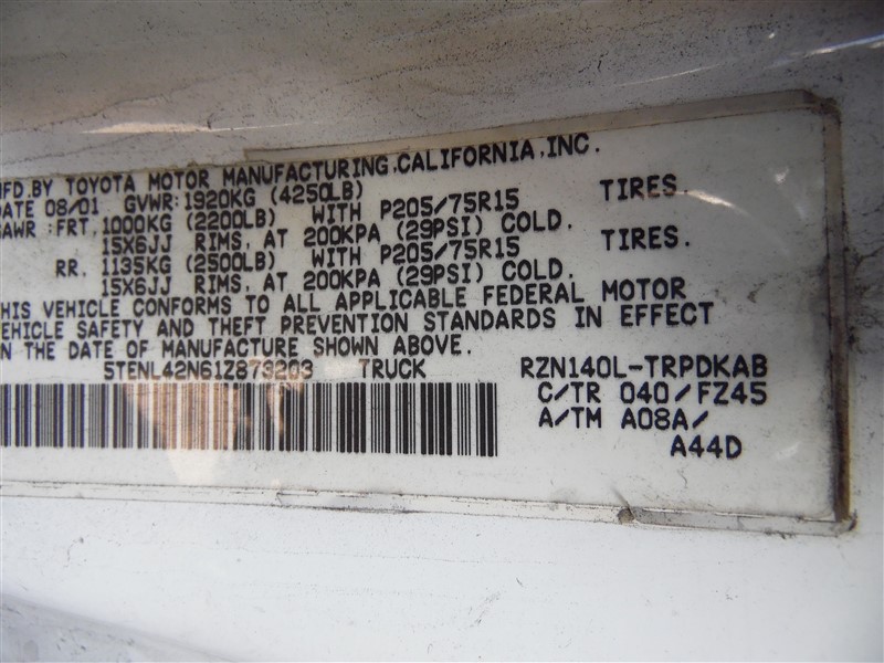 2001 Toyota Tacoma White Standard CAb 2.4L AT 2WD #Z233552001 Toyota Tacoma White Standard CAb 2.4L AT 2WD #Z23355