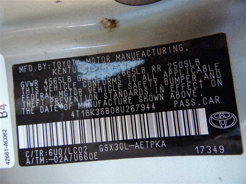 2008 Toyota Avalon Limited Olive Green 3.5L AT #Z235302008 Toyota Avalon Limited Olive Green 3.5L AT #Z23530