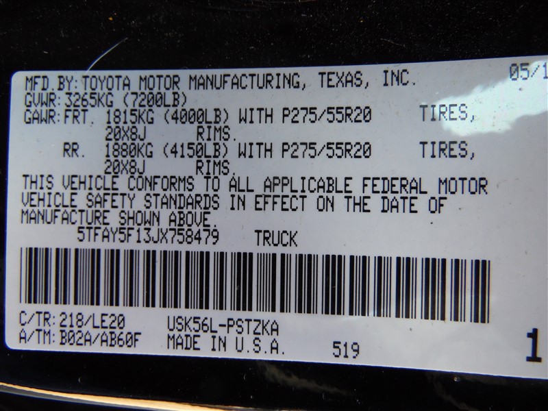 Make : Toyota Tundra Platinum Interior Color: Black