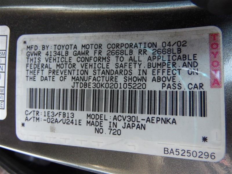 Make : Toyota Camry LE Interior Color: Gray