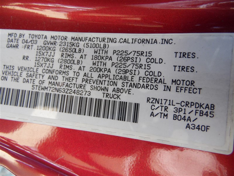2003 Toyota Tacoma SR5 Burgundy 2.7L AT 4WD #Z246582003 Toyota Tacoma SR5 Burgundy 2.7L AT 4WD #Z24658