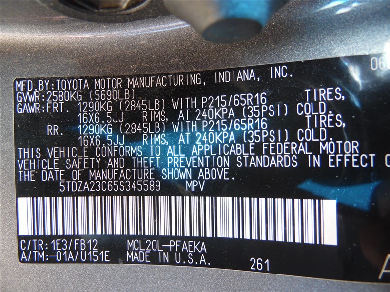 Make : Toyota Sienna LE Interior Color: Gray
