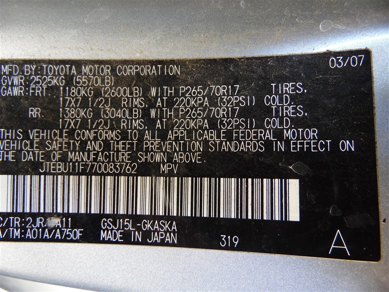 2007 Toyota FJ Cruiser Silver 4.0L AT 4WD #Z24694