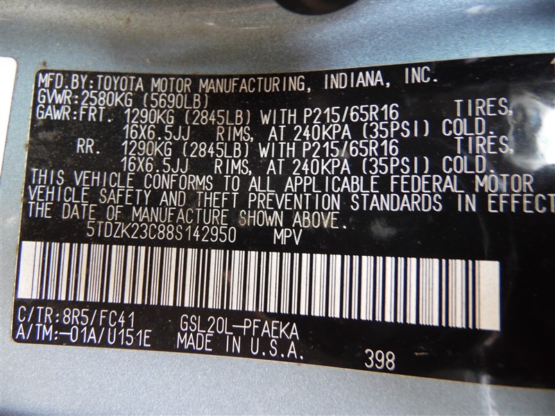 2008 Toyota Sienna LE Blue 3.5L AT 2WD #Z246932008 Toyota Sienna LE Blue 3.5L AT 2WD #Z24693