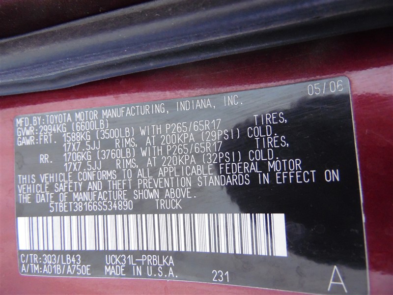 2006 Toyota Tundra Burgundy Crew Cab 4.7L AT 2WD #Z24702