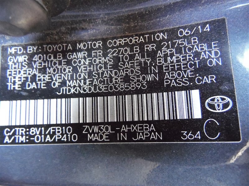 2014 Toyota Prius Gray 1.8L AT #Z247372014 Toyota Prius Gray 1.8L AT #Z24737