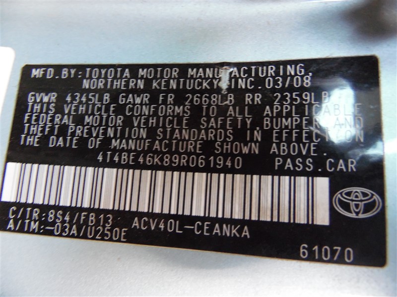 2009 Toyota Camry LE Sky Blue 2.4L AT #Z247992009 Toyota Camry LE Sky Blue 2.4L AT #Z24799