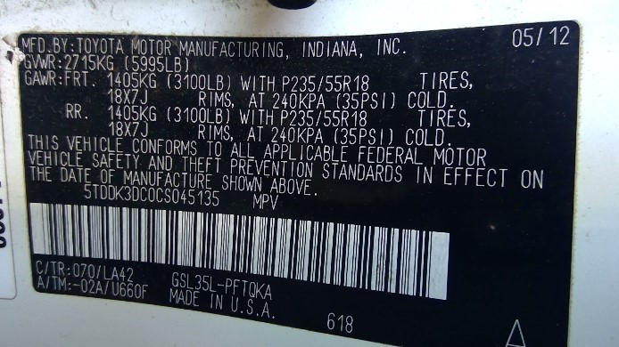 2012 TOYOTA SIENNA, WHITE, LIMITED, 3.5L, AWD,  Z249142012 TOYOTA SIENNA, WHITE, LIMITED, 3.5L, AWD,  Z24914