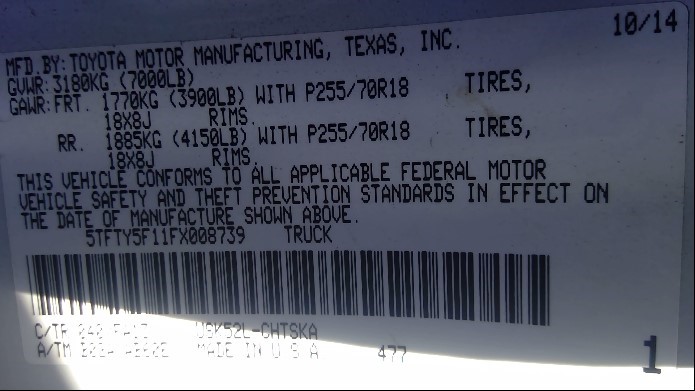 2015 TOYOTA TUNDRA, SR5, EXTD CAB, 5.7L, 2WD,  Z259332015 TOYOTA TUNDRA, SR5, EXTD CAB, 5.7L, 2WD,  Z25933